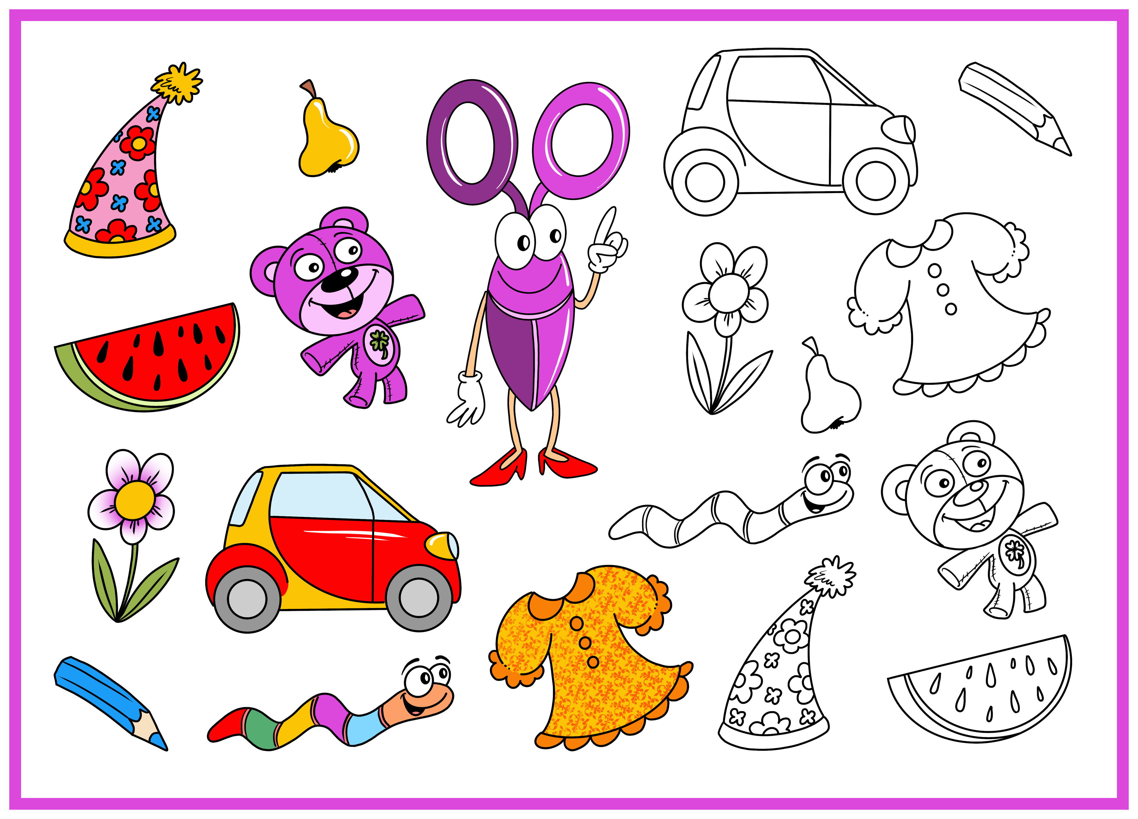 Vidíte to černobíle nebo spíše v barvách? Spojte obrázky, které jsou stejné. Barevná a černobílá provedení umí mnohdy nabídnout úplně jinou perspektivu a také zmást. Které obrázky jsou stejné? Po vyřešení můžete také černobílé obrázky obléknout do barev.