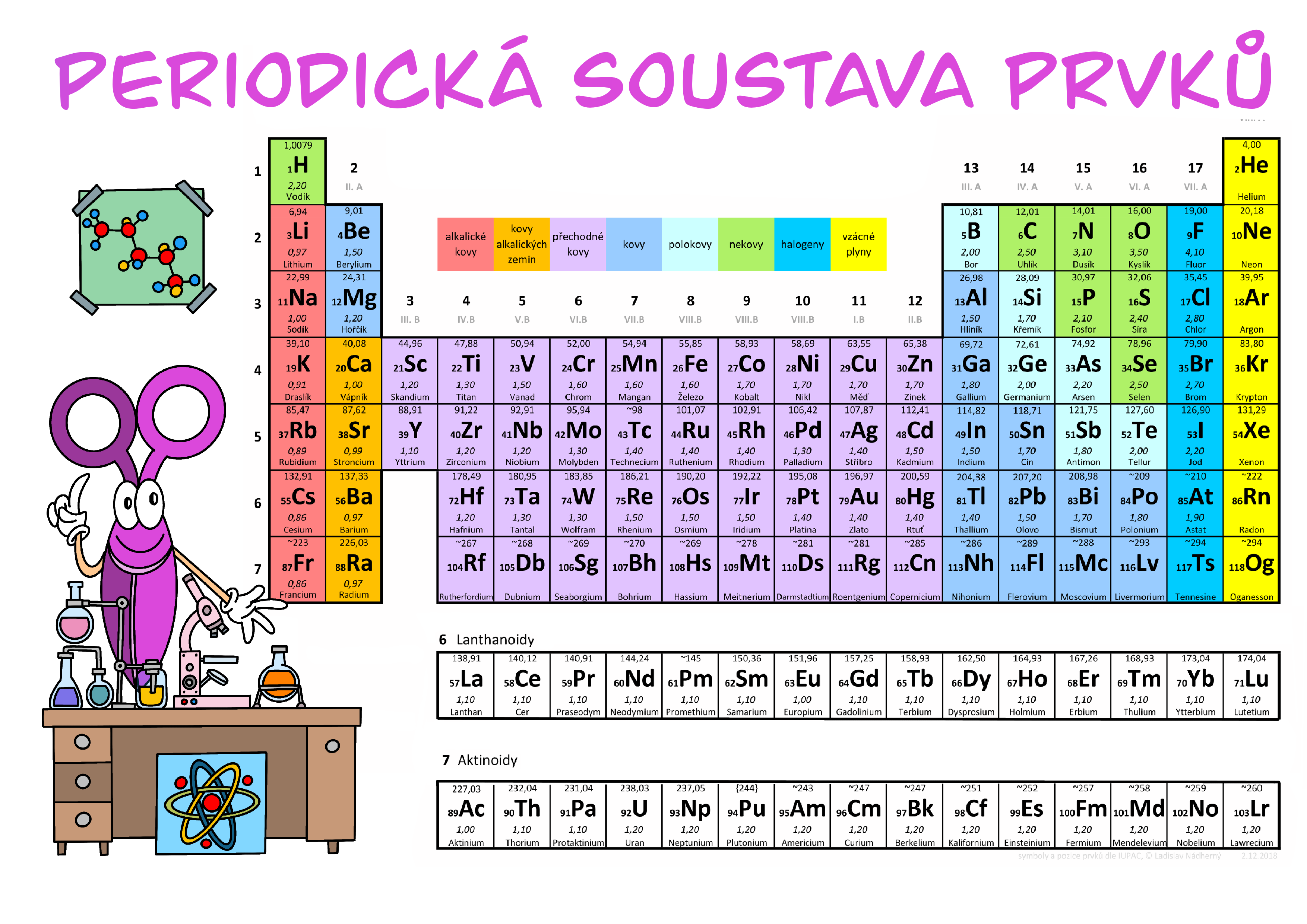Vytiskněte si šikovného pomocníka pro procvičování chemie. Periodická tabulka prvků je nezbytným parťákem pro učení názvů jednotlivých prvků, jejich třídění i tvoření sloučenin. Mějte tabulku stále u sebe a neváhejte, který prvek je kov a který plyn!