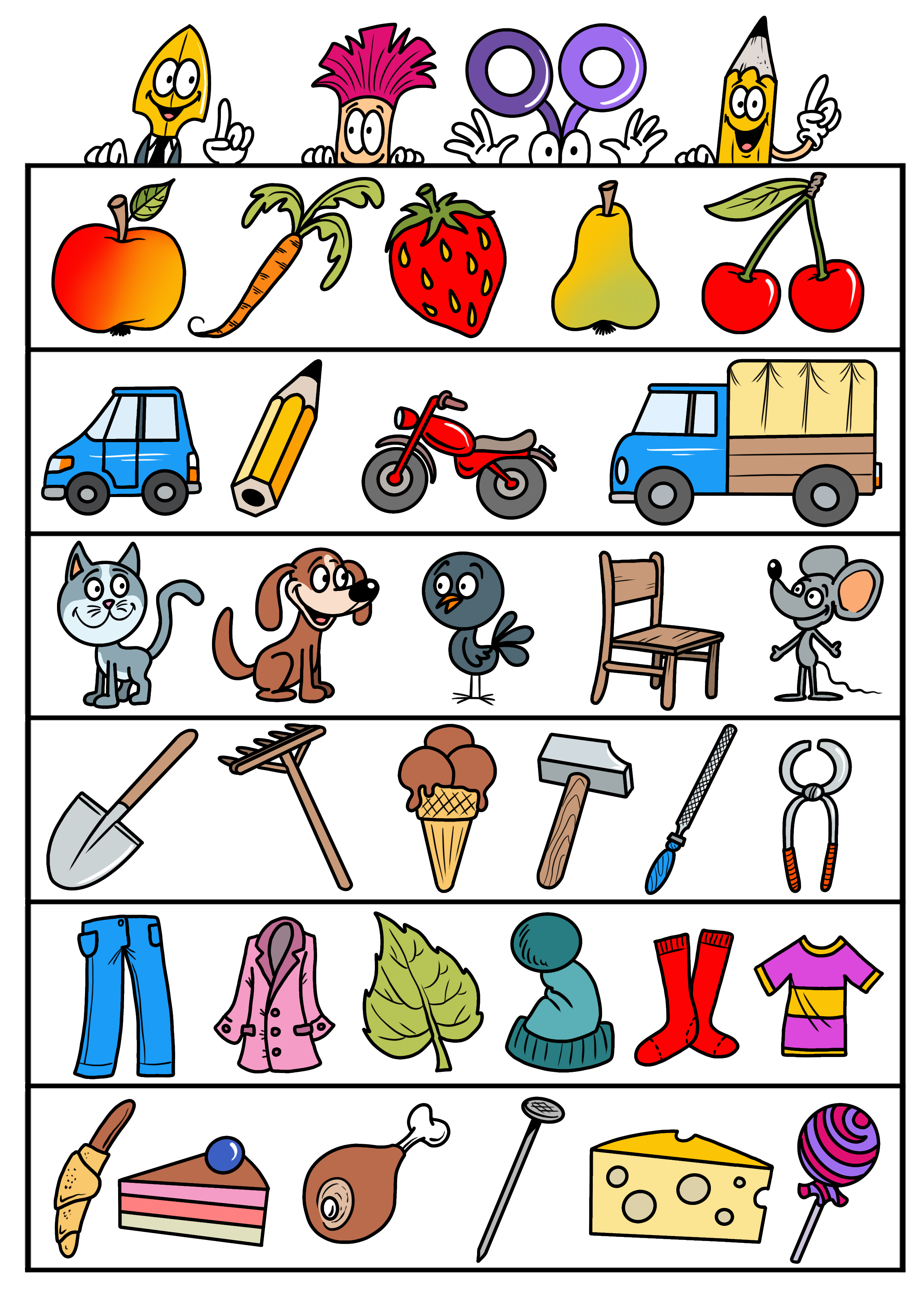Pro všechny chytré hlavy! Najděte souvislost mezi obrázky v každém řádku a odhalte, jaký tam logicky nepatří. Co se zatoulalo mezi kusy oblečení a co mezi nářadí? Potrénujte logické uvažování.