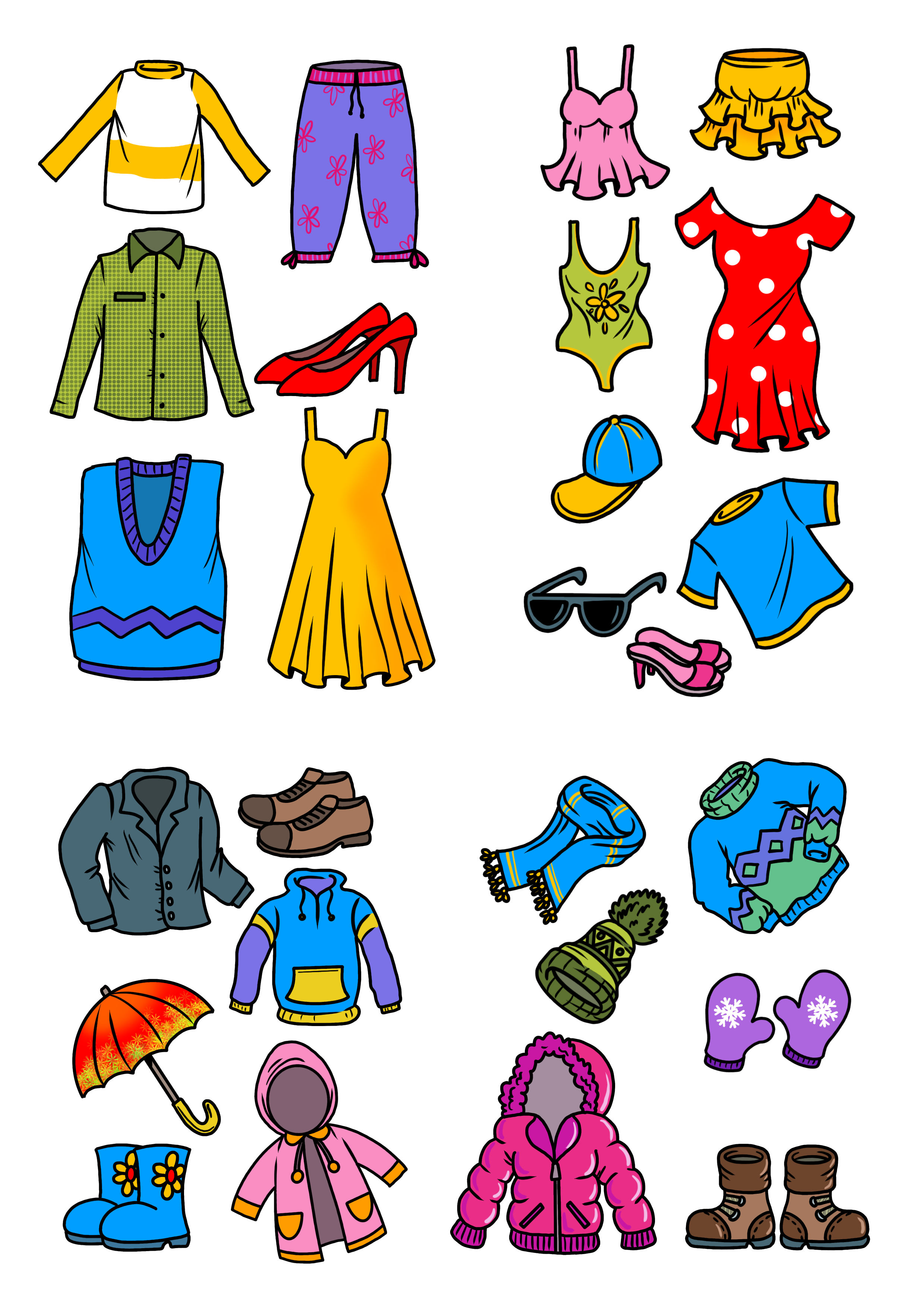 Pláštěnka, košile, pulovr, plavky nebo palčáky? Umí se váš předškolák sám obléknout a ještě všechno pojmenovat? Ví, co si obléct do divadla a co na hory? Použijte náš výukový list a všechno spolu hezky pojmenujte. A pozor! Ne všechno má jen jeden název, ne všechno má jen jedno využití.