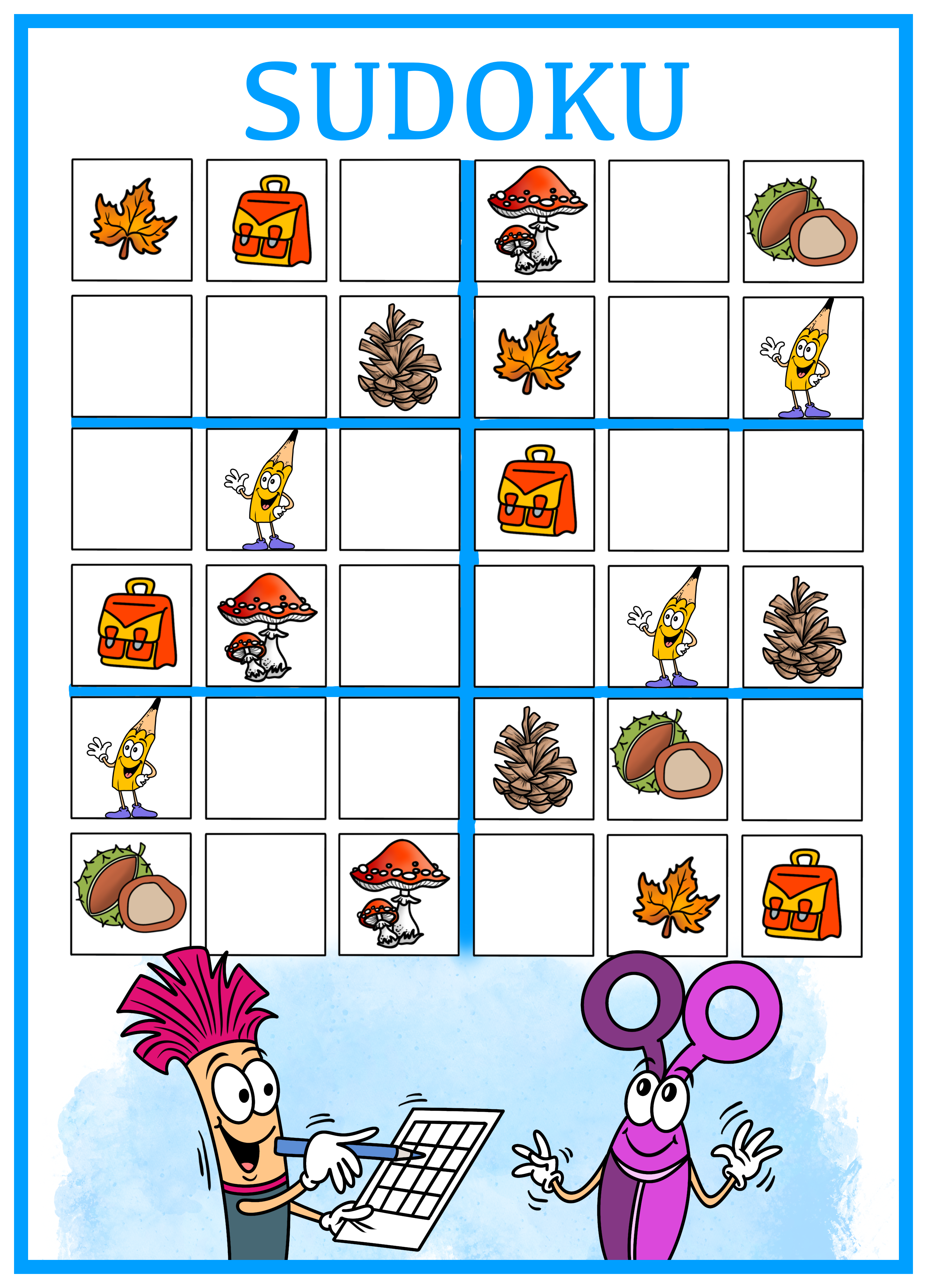 Ponořte se do světa podzimního obrázkového sudoku! Tato jedinečná verze klasické hry kombinuje logické myšlení s motivy podzimu a školních potřeb.