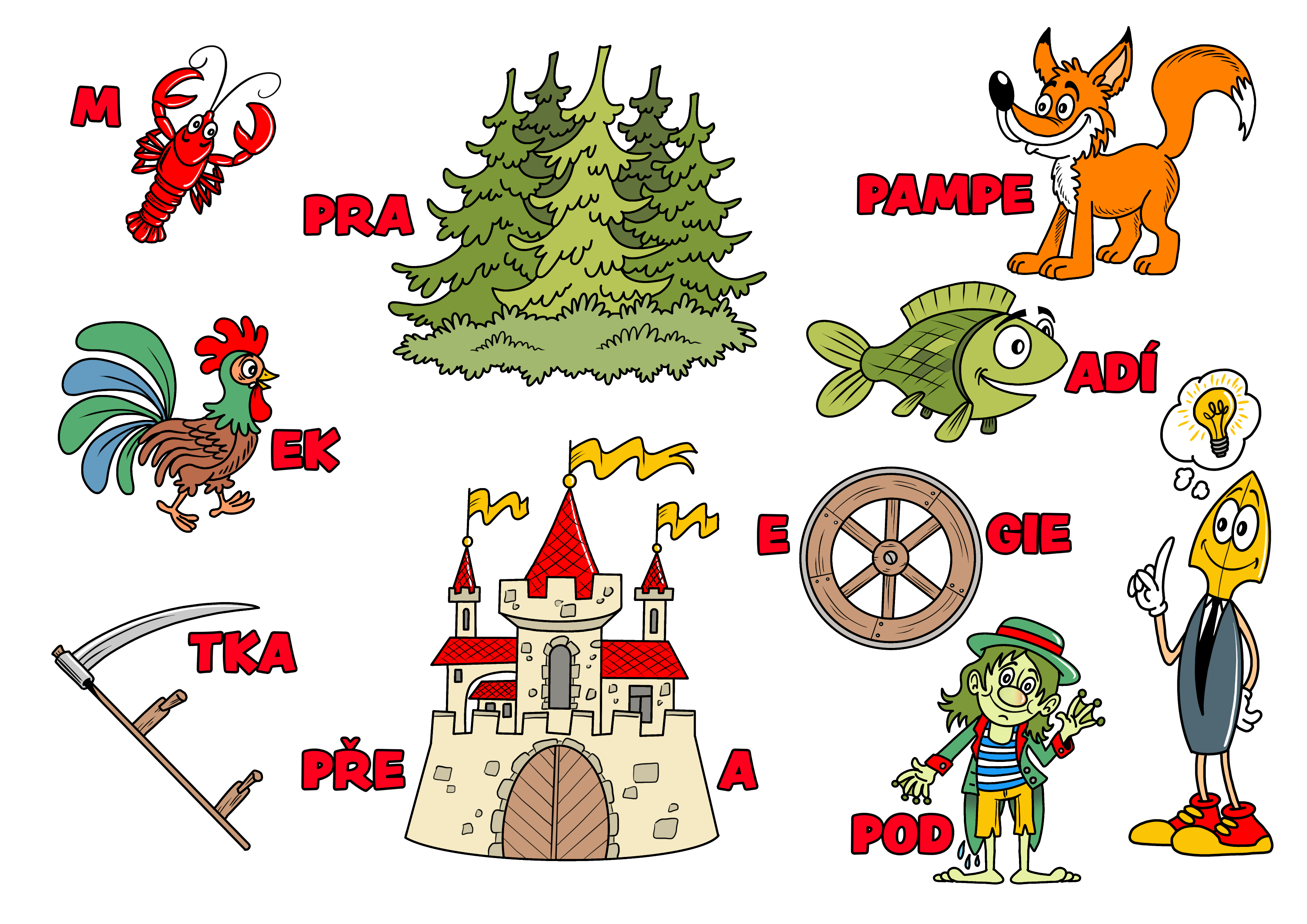 Jedno slovo v sobě občas skrývá i nějaké to další! Lámejte si s námi hlavu a rozluštěte slova, která se skrývají za písmenky a obrázky. V jakém slovu se skrývá hrad a v jakém les? Napadnou vás ještě nějaké další kombinace předpon, přípon a kořenů?