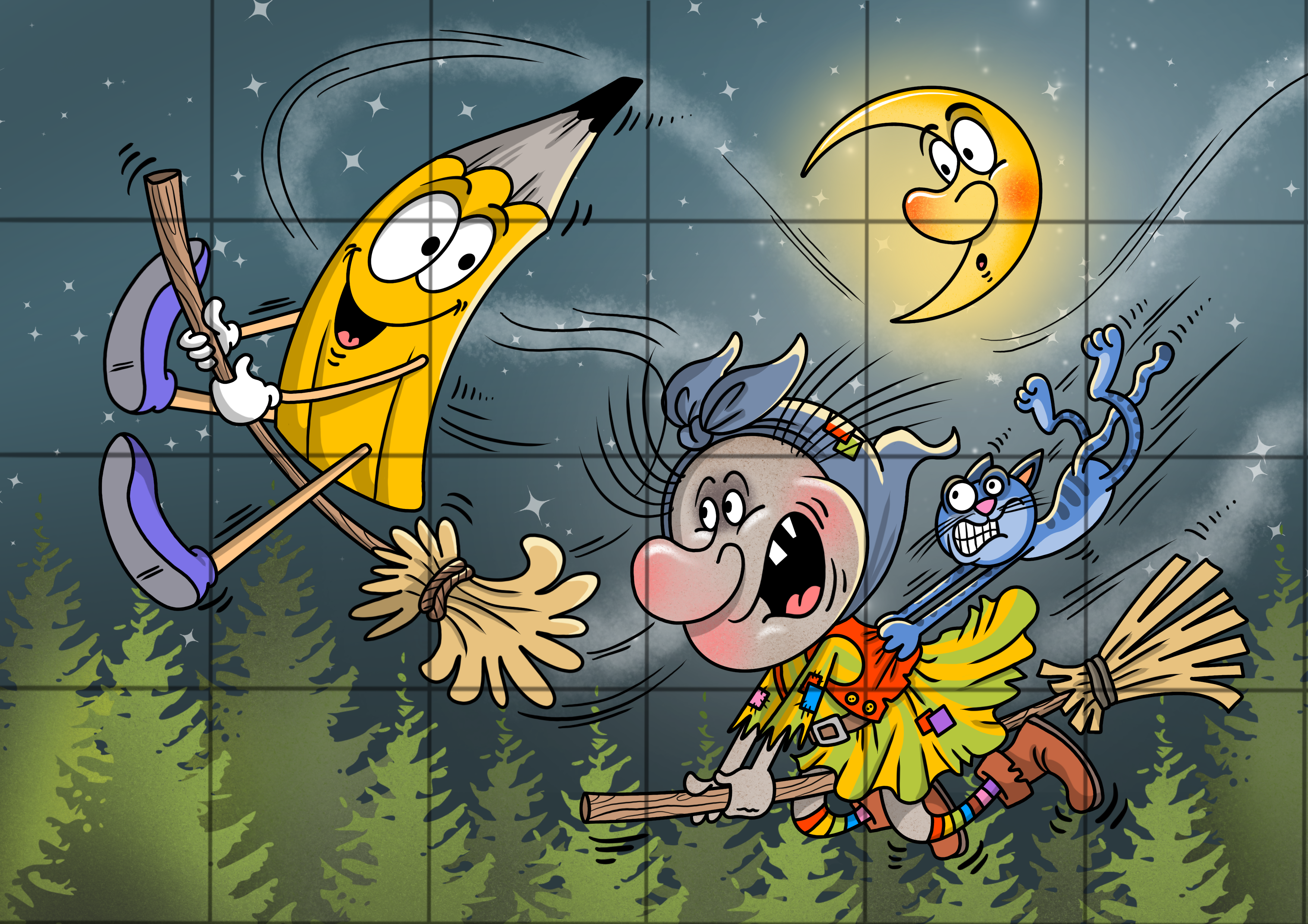 Obrázek vytiskněte a rozstříhejte s dítětem podle čar. Je to jednoduché stříhání rovných linek. Poté dílky zamíchejte, nechte dítě znovu sestavit a nalepit na čtvrtku. Jednoduchý trénink stříhání a skládání s čarodějným motivem.