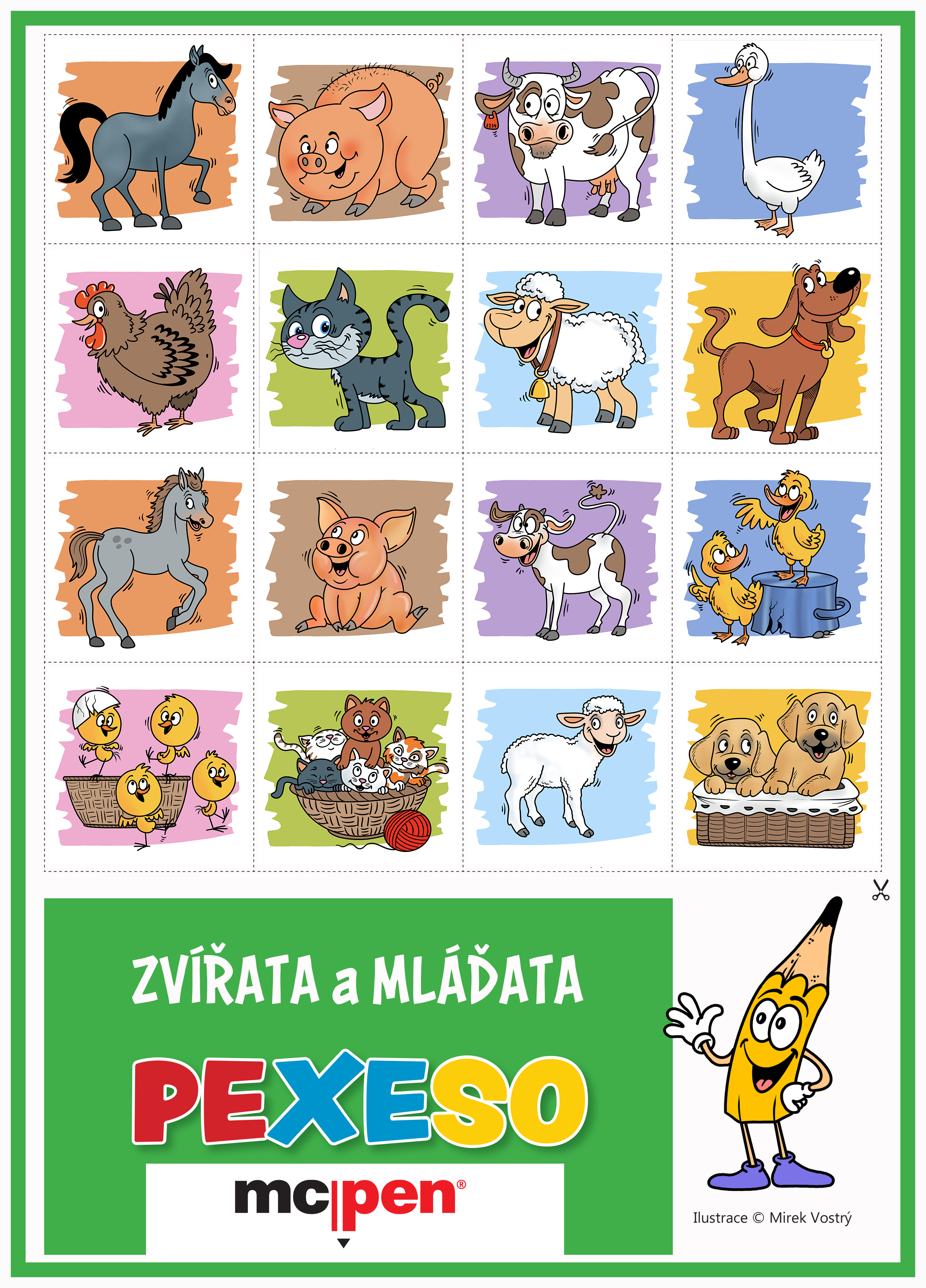 Nejprve si vytiskněte připravený list s pexesem. Poté pečlivě rozstříhejte jednotlivé kartičky. Zamíchejte je a rozložte obrázkem dolů. A hra může začít – hledejte správné dvojice a bavte se!